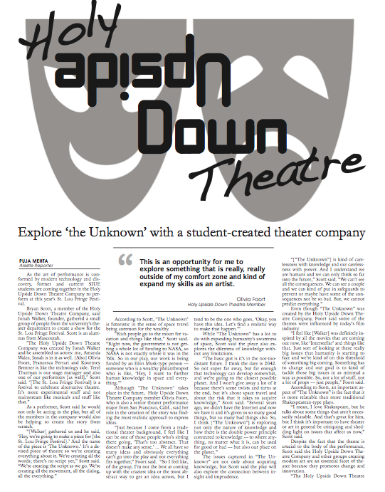 Since the scene changes happen so quickly, Cocuzza said the biggest challenge in this process is deciding how everything will flow together.