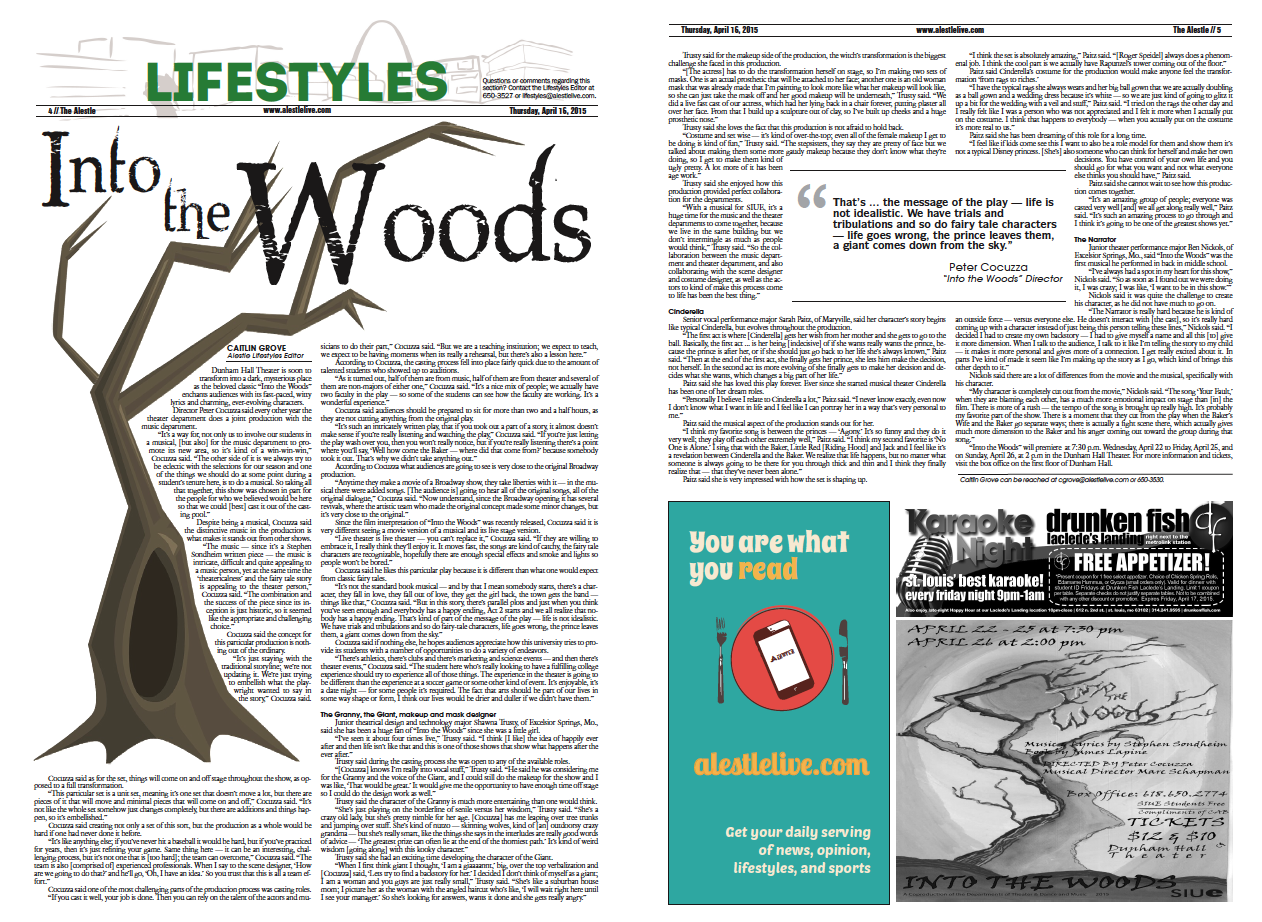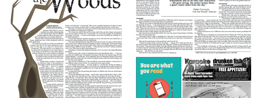 “Into the Woods” will premiere at 7:30 p.m. Wednesday, April 22 to Friday, April 25, and on Sunday, April 26, at 2 p.m in the Dunham Hall Theater. For more information and tickets, visit the box office on the first floor of Dunham Hall.